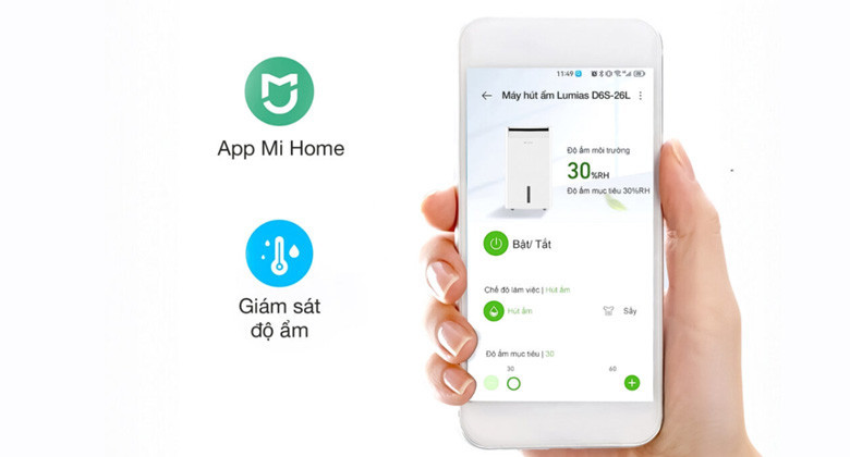 3. Có thể điều khiển máy hút ẩm Lumias D6S-26L bằng điện thoại không?