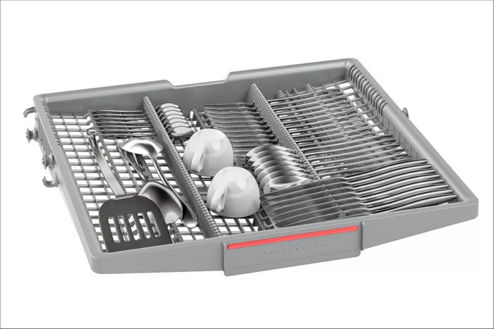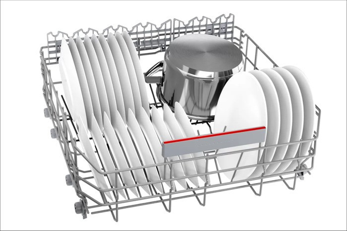 Chiếc máy rửa bát Bosch này sở hữu thiết kế đơn giản với gam màu trắng bạc tinh tế, dễ hài hòa với nội thất của nhiều không gian bếp. Sản phẩm có kết cấu chắc chắn, kích thước các chiều là 81,5cm x 59,8cm x 55cm (Cao x rộng x sâu) cùng trọng lượng 35,2kg nhưng được lắp đặt âm tủ nên sẽ tối ưu diện tích sử dụng cho nhiều gian bếp, góp phần tạo điểm nhấn ấn tượng cho căn bếp của mỗi gia đình.