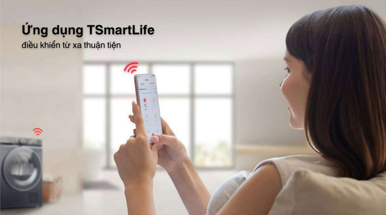 Chế độ sấy yên tĩnh phù hợp cho không gian sinh hoạt chung, hạn chế gây ảnh hưởng đến sinh hoạt gia đình. Hỗ trợ điều khiển từ xa thông qua ứng dụng TSmartLife, giúp bạn theo dõi và điều chỉnh hoạt động sấy dù không có mặt tại nhà.