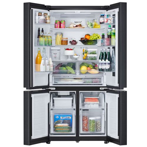 Thiết kế Multi Door 4 cánh hiện đại, mở rộng ngang, tiện lợi khi phân loại và bảo quản thực phẩm. Mặt tủ bằng kim loại cao cấp, kết hợp khay kính cường lực bền bỉ và dễ vệ sinh.